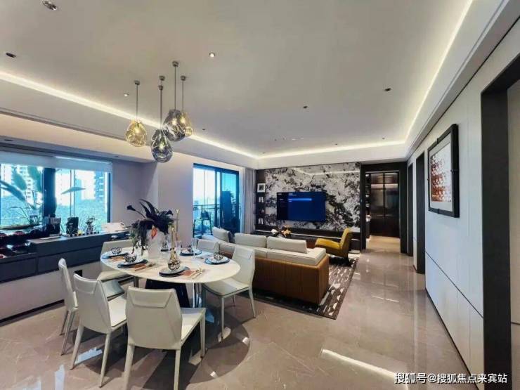 餐客厅一体化,打造出近30㎡会客厅,加上厨房可灵活改造,整体空间非常奢阔,主人气场全开!