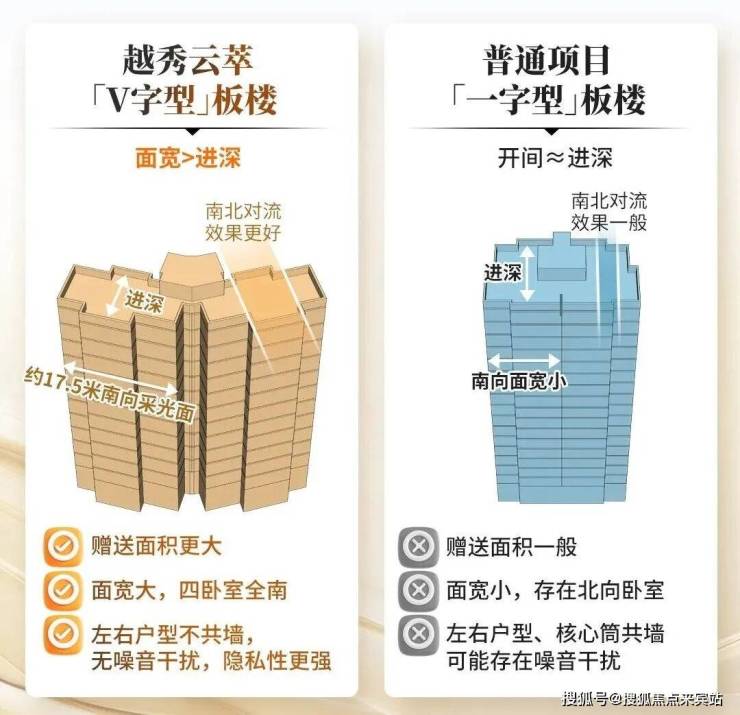 云萃的独创的「V字型」板楼,真正做到了开间>进深。有什么好处呢?