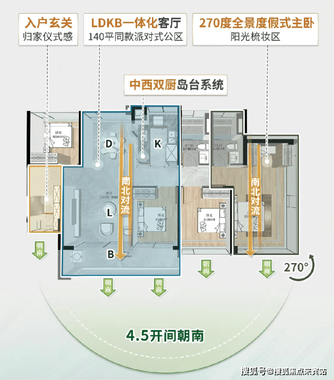 这户型的过人之处,我愿称之为“通透尺度天花板”,主要体现在两点:一是超强对流能力,二是豪宅级空间尺度。