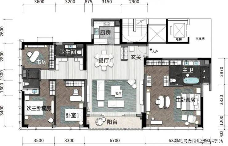 户型灵动可变,实用型4房可变享受型双主卧3房。