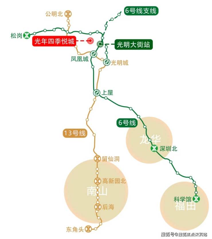若是出行,6号线光明大街站C出口就在直线距离约800米处,步行10分钟便能抵达,不换乘情况下可直达红山、北站、福田等,换乘13号线全程8个站又能去到南山。