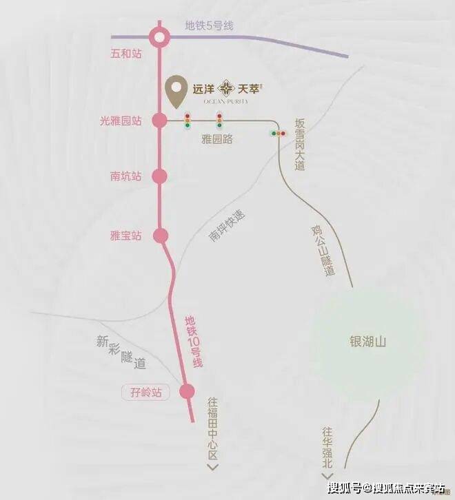 交通上,远洋天萃家门口就是“福田专线”——10号地铁线“光雅园站”B出口,1站到五和枢纽站,可换乘5号地铁线/深大城际,3站可到龙华深圳北站,3站到福田、4站到南山。