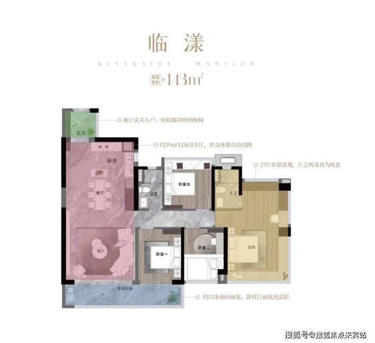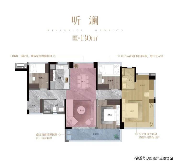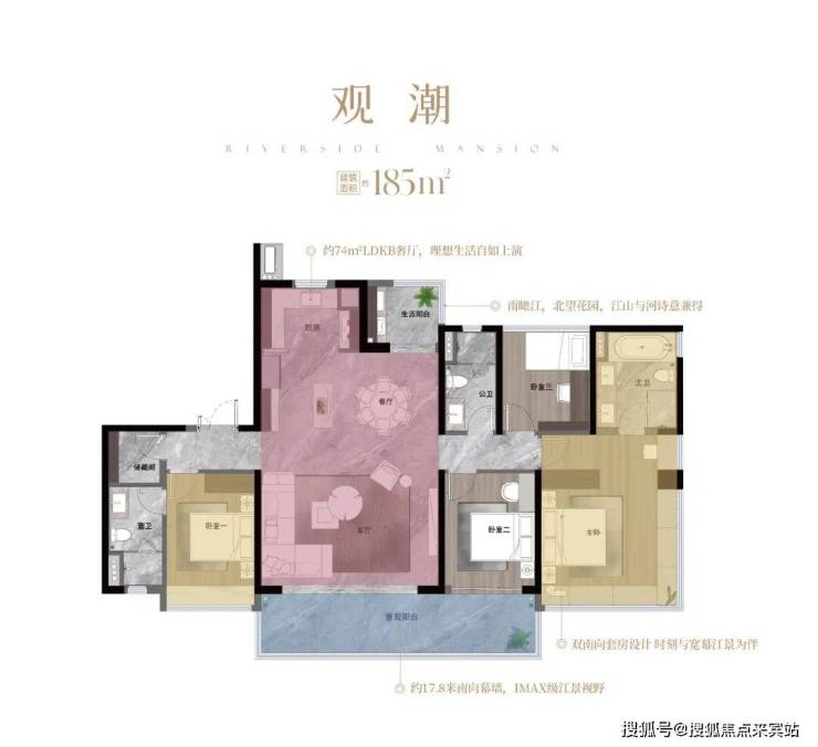 【户型】约130/143/180㎡全南四房,使用率约100%