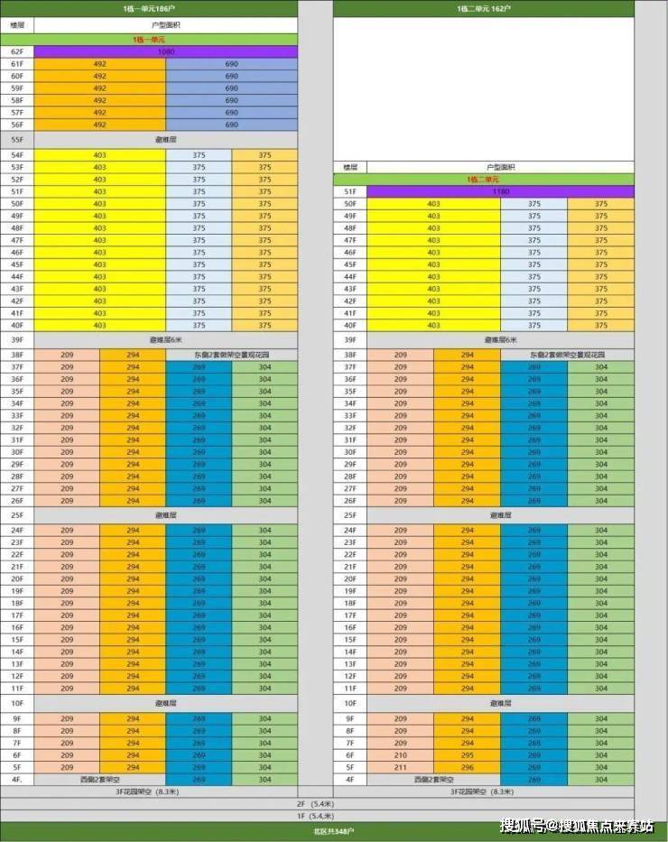 项目预计12月首推北区1-1栋(61F)和1-2栋(51F)约348套,