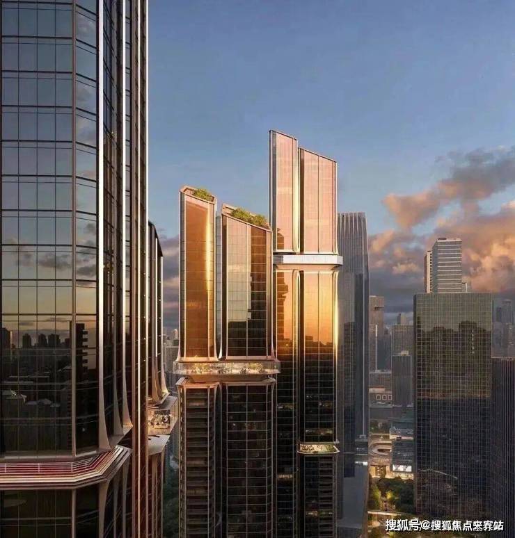 设计层面更是亮点十足:将避难层改造为观景会所,高空连廊嵌入社交空间,地下车库预留智能驾驶车道,塔楼顶部还规划直升机停机坪,从地面到空域的立体通行体验,全方位匹配顶豪生活需求。