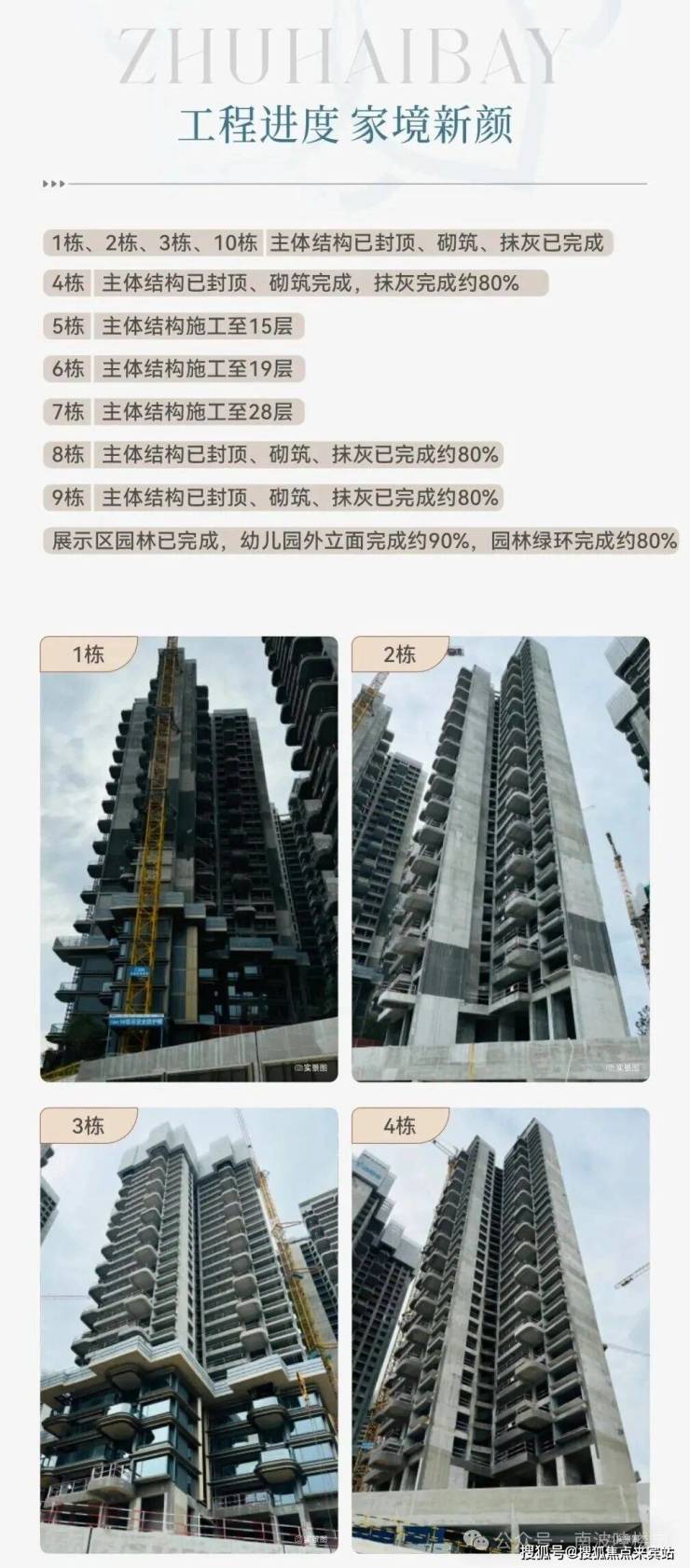 华发珠海湾位于高新区后环片区,项目总建面达85万㎡。项目分为4个地块开发,整体将规划建设住宅+商业,同时配建小学、幼儿园、邻里中心等。109地块已经开建,该地块总占地4.5㎡,总计容建筑面积超16万㎡。共规划10栋住宅,全部为塔楼设计,预计可提供1212套住宅。此外,项目配建的高新区第一中心幼儿园也已获得批示,总占地约0.5万㎡。