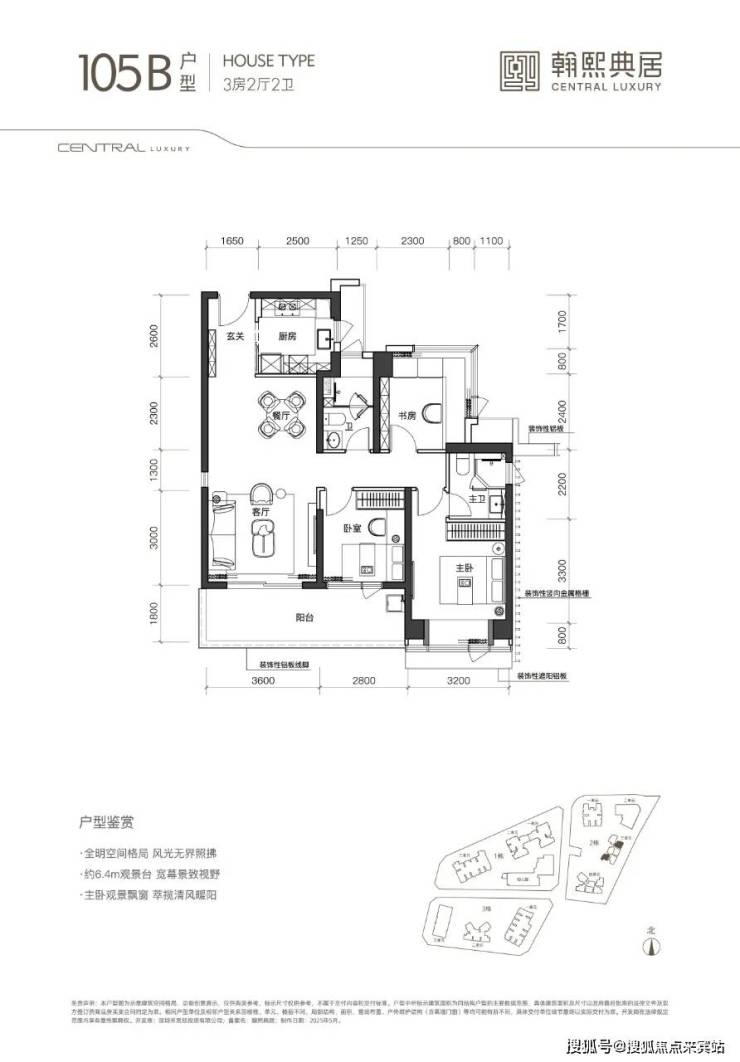 105㎡B户型:位于三单元02、06梯腿,3房2卫、竖厅格局,06梯腿朝小区内部,02梯腿朝东,相对来说是这一次性价比最高的户型。