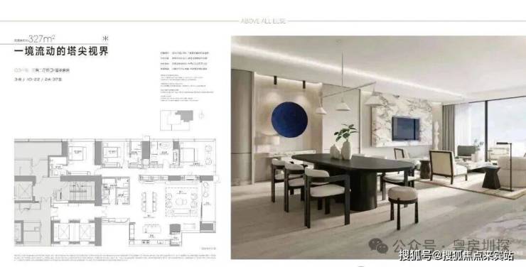 据了解,项目首推T3栋约123户,面积段约为:低区约303-327-400㎡,高区约400-570-1000㎡。