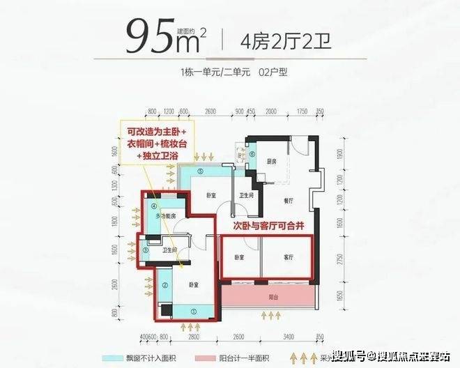 【户型面积】约75-85㎡3房2卫,约94-105㎡4房2卫