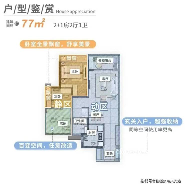 建面约77m²高性价比阳光三房,高拓空间,同等面积更阔享受