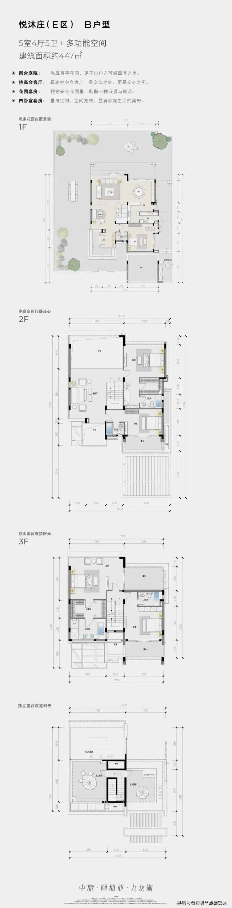 ✮面积段:单套面积约在500-640㎡,庭院面积约在400-800㎡