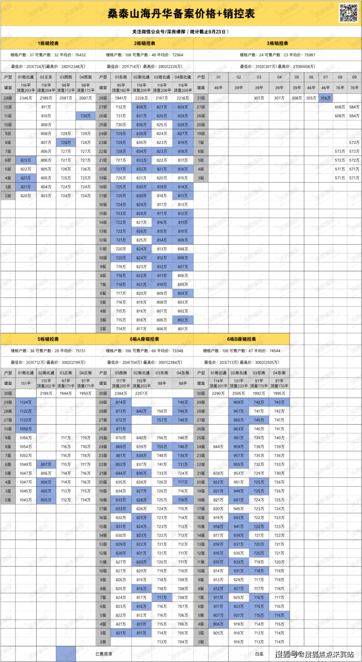 罗sir还特意做了份桑泰山海丹华的备案价格+销控表,可以作为参考,如果想要全套的折后价格明细表以及后期最新的销控图,可以加微信私聊罗sir。
