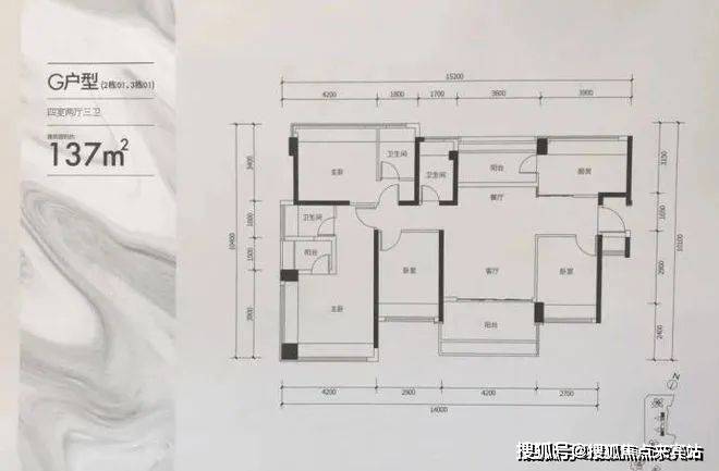 :主推77-137㎡三至四房,得房率近100%