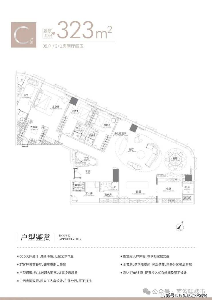 C户型:323㎡,单价4.6-5.4万/㎡,总价1509-1752万