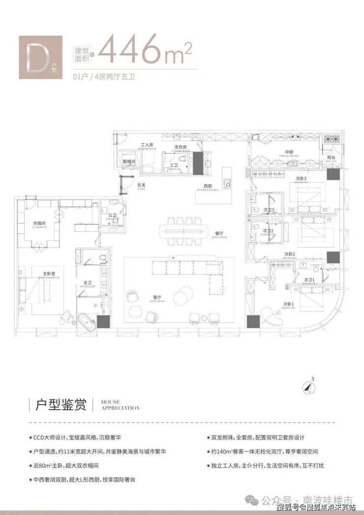 D户型:446㎡,单价5.2-5.9万/㎡,总价2335-2671万
