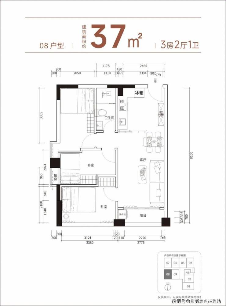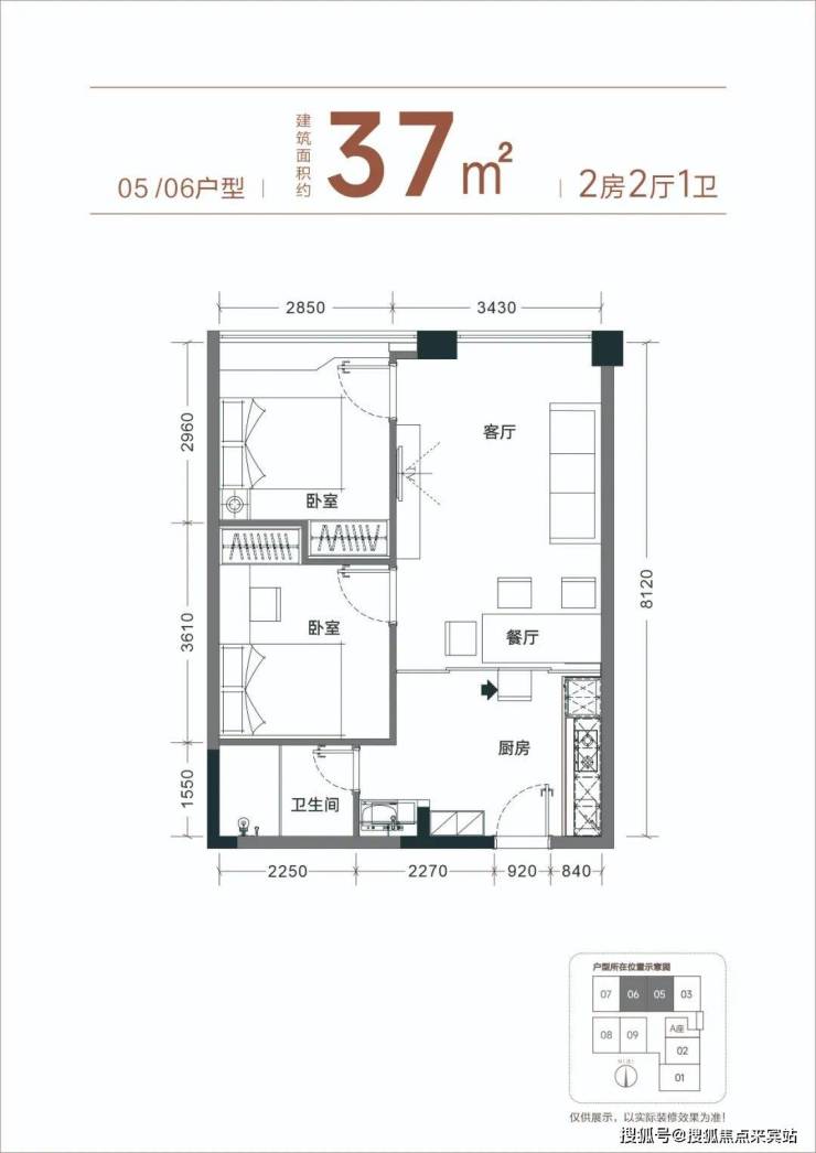 【产品面积】约37㎡小两房(实际套内使用面积接近54㎡)