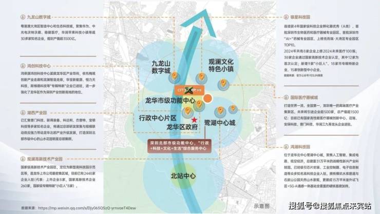 观澜占据龙华70%产业,鹭湖中心城与九龙山数字城双核驱动,聚焦人工智能、生物医疗等高新技术产业;