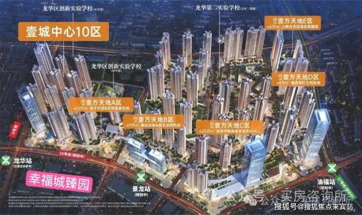 项目地理位置优越,与壹城中心商业MALL仅一路之隔,距离4号线和25号线的龙华站仅400米。未来,在楼盘200米范围内还将规划两所九年制公办学校,楼下在建的人民路学校也是龙华第二实验学校华美校区。幸福城臻园将建设为41-56层的超高层住宅,为住户提供便利的生活配套和良好的教育资源。