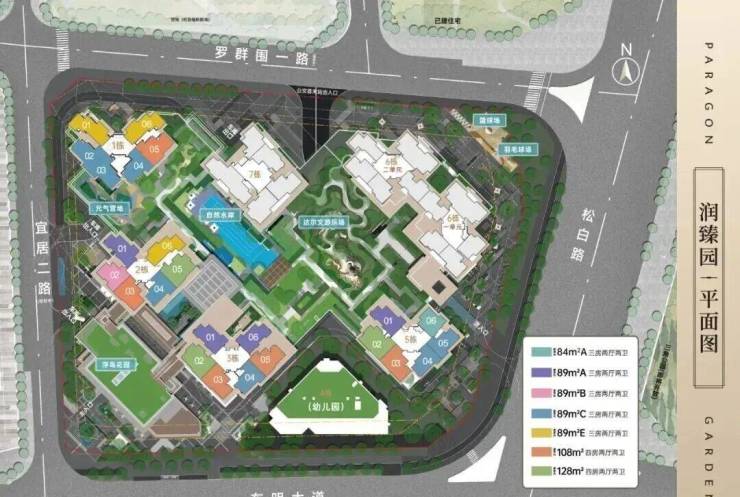 宏城·润臻园(2-12地块)位于东明大道和松白路西北侧,由7栋高层住宅围合组成,