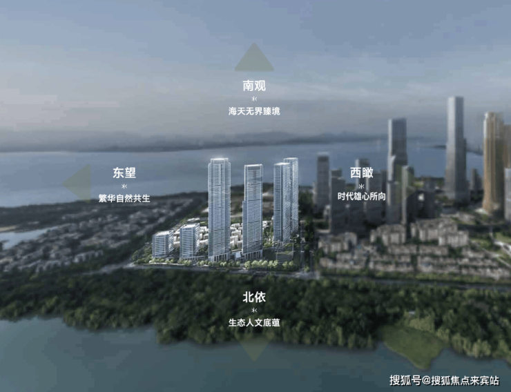 并通过精准的建筑角度旋转,每一栋皆根据其位置与朝向,以最优偏转角度精准面向景观资源,确保每户都能以近乎广角的开阔视界,捕获海、湖、园、城等多重复合景观。