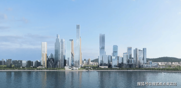 并以“生境共栖,向海而生”为设计理念,采用一字排开无重叠的排布,以及东低西高的格局,将四栋超高层塔楼沿用地北侧错落布置,使形态更加疏朗开扬,形成了起伏有致的天际轮廓。