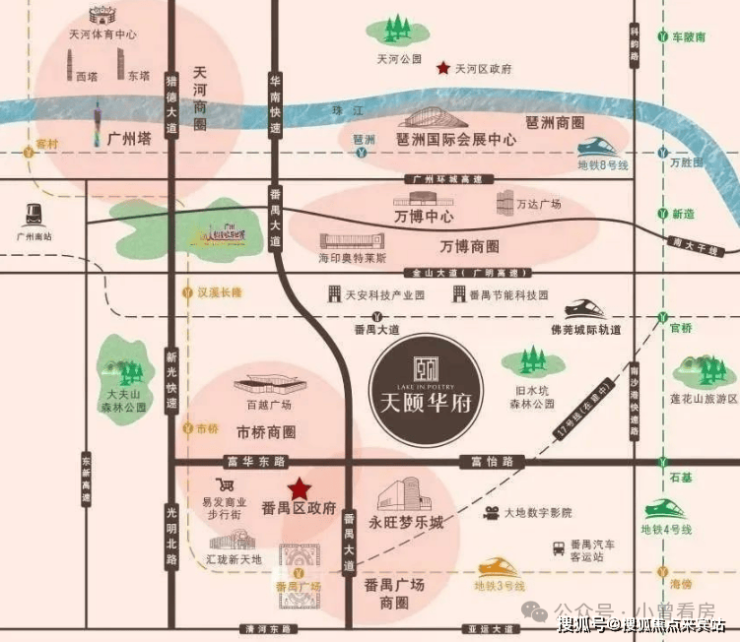 4.天颐华府周边商业配套丰富,距离番禺广场、市桥商圈、万博中心等商业中心仅几分钟车程,便利的交通条件使居民能够轻松到达各类商业设施。医疗配套齐全,周边有多家医院可供选择,教育资源丰富,涵盖小学、中学和大学城等多个教育阶段,交通便利,多条主干道和地铁线路贯穿周边,方便居民出行。