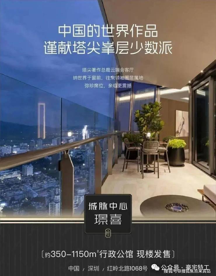 当摩天资产成为国际流通的“价值护照" 世界塔尖的目光,正聚焦中国。 ◆ 全球地标 天际资产◆ 388米深圳天际线地标 城脉中心·璟喜 正以中国资产的世界叙事 重构全球财富坐标 ◆ 超级区位底盘◆ 深圳黄金中轴、世界级金融街之上 福田、罗湖、香港三区资源中心 立足百万方城脉汇的高端商圈配套 铸就璟喜不可复制的资源王座 ◆总裁级行政公馆 ◆ SCDA&CCD双大师设计大平层 户户自带40㎡私人观景台 不仅是纯粹的空间占有 更总裁是对话世界的云端会客厅 匹配全球资产买家眼界与品味