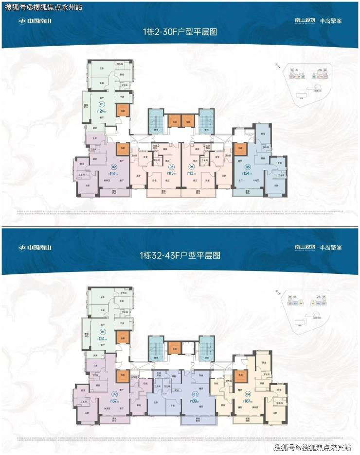 另外,139㎡4房2卫和167㎡5+1房3卫户型则位于32至43层,户数有限,南向视野开阔,可观赏海景,整体居住舒适度高,高区景观无遮挡。
