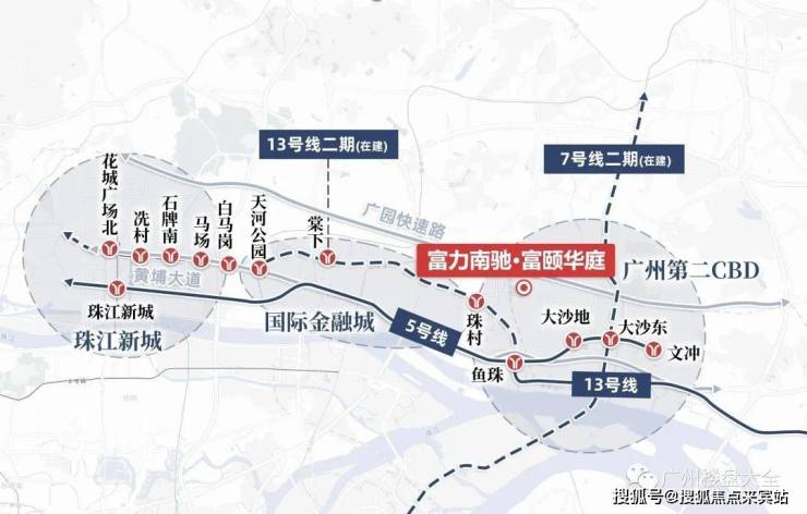 从项目出发,经由5号线、13号线、28号线(规划)交汇的鱼珠站,8站可达珠江新城CBD。