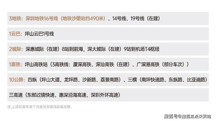 交通配套:交通配套极为便利,轨道交通方面:距离地铁16号线"沙壆站"约400米(步行约5分钟),可直达龙岗中心城、大运枢纽,并通过换乘14号线(坪山广场站)30分钟直达福田CBD ;距离云巴1号线"比亚迪北站"约900米,可快速接驳坪山中心区及燕子湖片区。