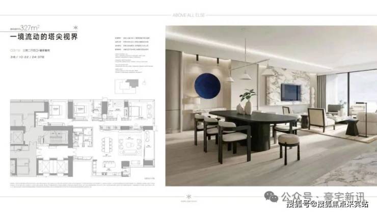 产品设计上,据了解,多为面积约300-1000㎡的宽境大平层产品,首批推出T3栋约123户,低区约304-327-402㎡,高区约400-570-1000㎡,层高约3.6-4.5米,均通燃气且配备超大阳台,部分户型采用 270° 环幕视野设计。