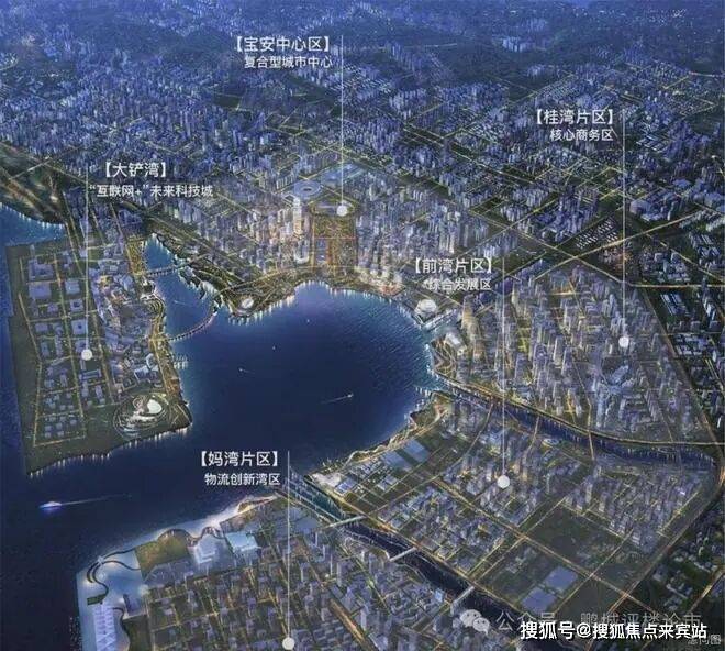 「世界酒店群」前海JW万豪酒店、瑞吉酒店、前海JW万豪酒店光之翼、艾美酒店等「湾海人文群」深圳书城湾区城、湾区之声、湾区之光、青少年宫、国际会议中心、宝安公共文化艺术中心、宝安图书馆等
