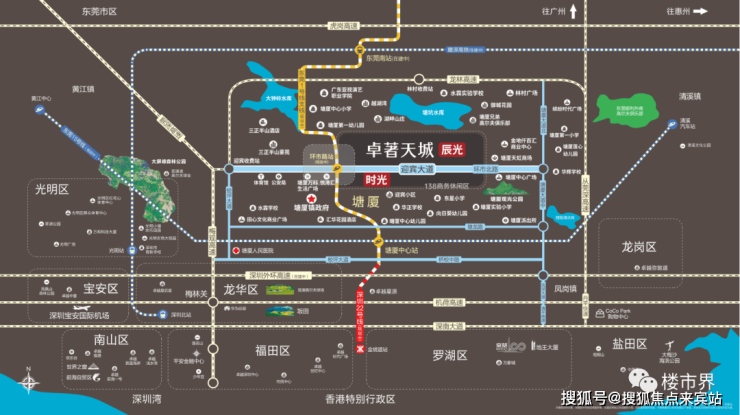 塘厦中轴·迎宾大道:龙林高速、从莞深高速、莞深高速、深圳外环高速(建设中)、清平高速,5大高速,便捷穿梭福田CBD;