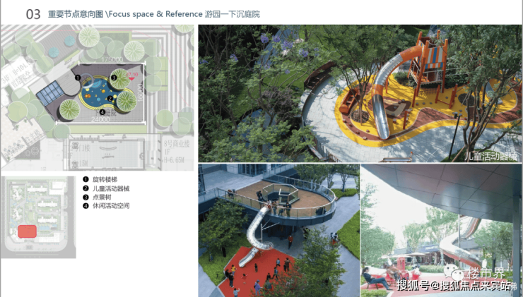 下沉庭院,孩童筑梦园:旋转楼梯、儿童运动器械、休闲活动空间,每一处都妙趣横生。