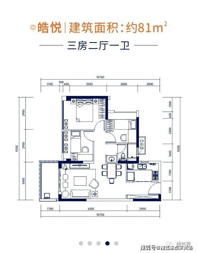 【皓悦】建筑面积约81㎡:三房二厅一卫