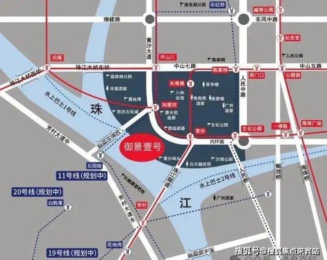 位于广州市荔湾区黄沙大道15-17号,临近地铁1号线黄沙站、地铁6号线如意坊站,双地铁上盖;傲居荔湾白鹅潭,一揽极幕江湾,位于三江汇聚之处,承接了千年商都、百年西关的历史文化,占据着城市的过往与未来,拥有着与生俱来的地脉优势,拥揽城市核心贵胄资源。