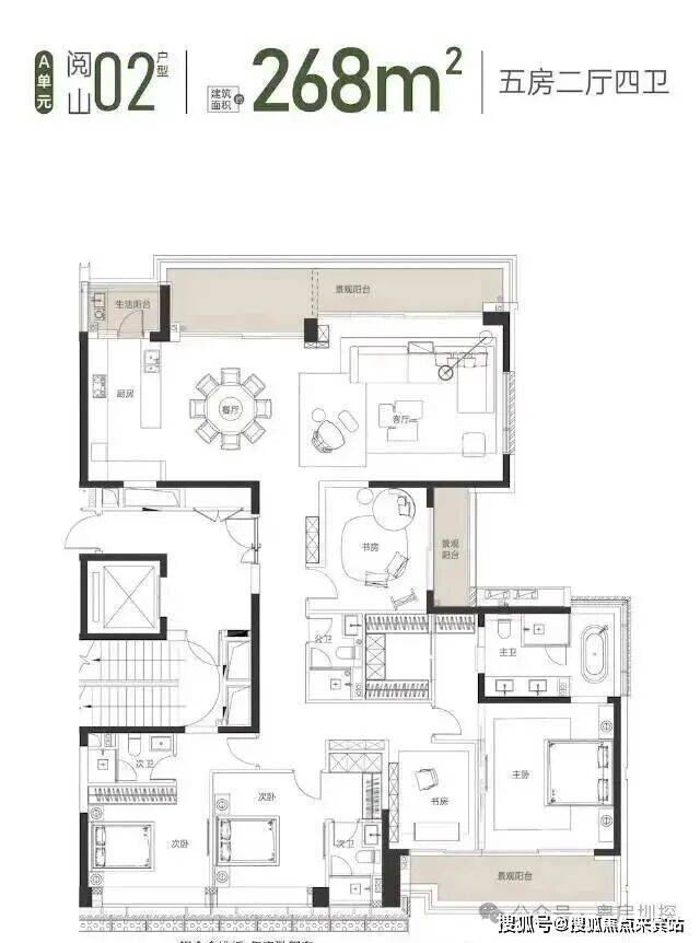268平五房四卫,两梯两户,专梯入户,约10.55米横厅,总价2680万起