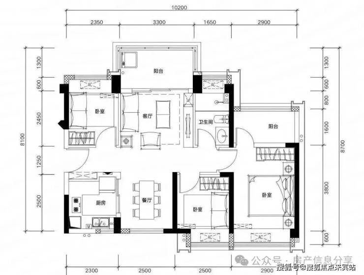 81㎡三房两厅两卫,空间利用极致,功能齐全。