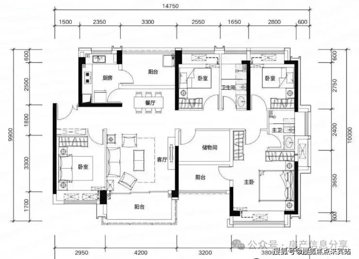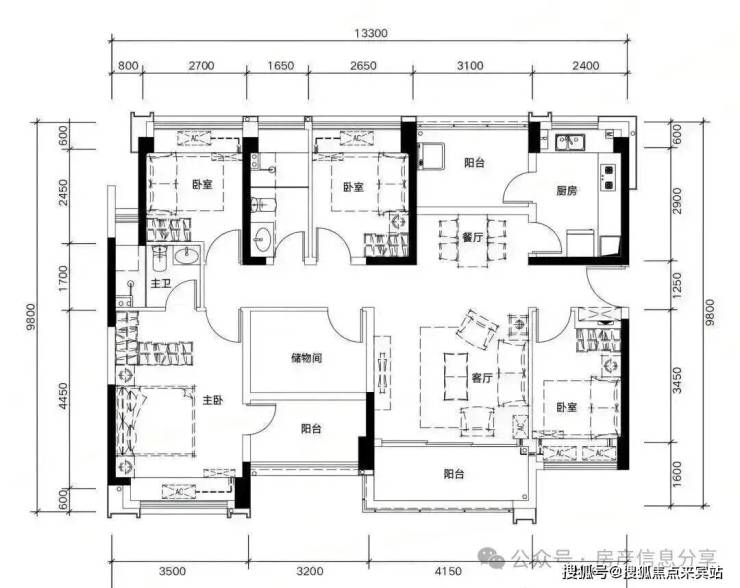 89㎡四房两厅两卫,同等面积多一间房,二孩家庭也能三代同堂。