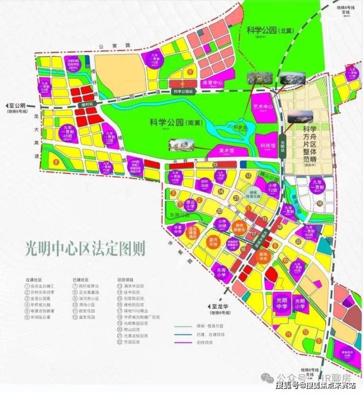 光明布局规划“一心两区”,“一心”即光明中心区,建设科学城的生活服务中心,集聚商业、居住、大型公共服务设施等顶级配套。