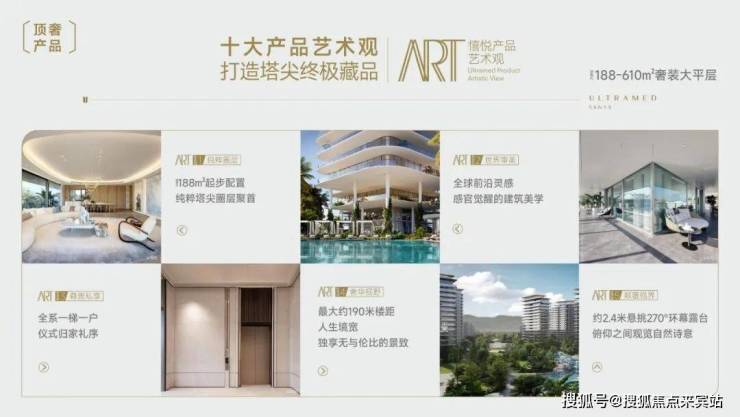 【海棠湾轴心 再造超级封面】超级地中海·憘悦,海棠湾轴心超级封面,建面约188-610㎡全系大户型,全球塔尖度假资产。源于追求艺术理想的美学洞察,超级地中海·憘悦以精神主义的浪漫,融合生活与艺术度假的边界,启新全球塔尖度假资产的「憘悦艺术观」,敬献全球层峯高净值人群。
