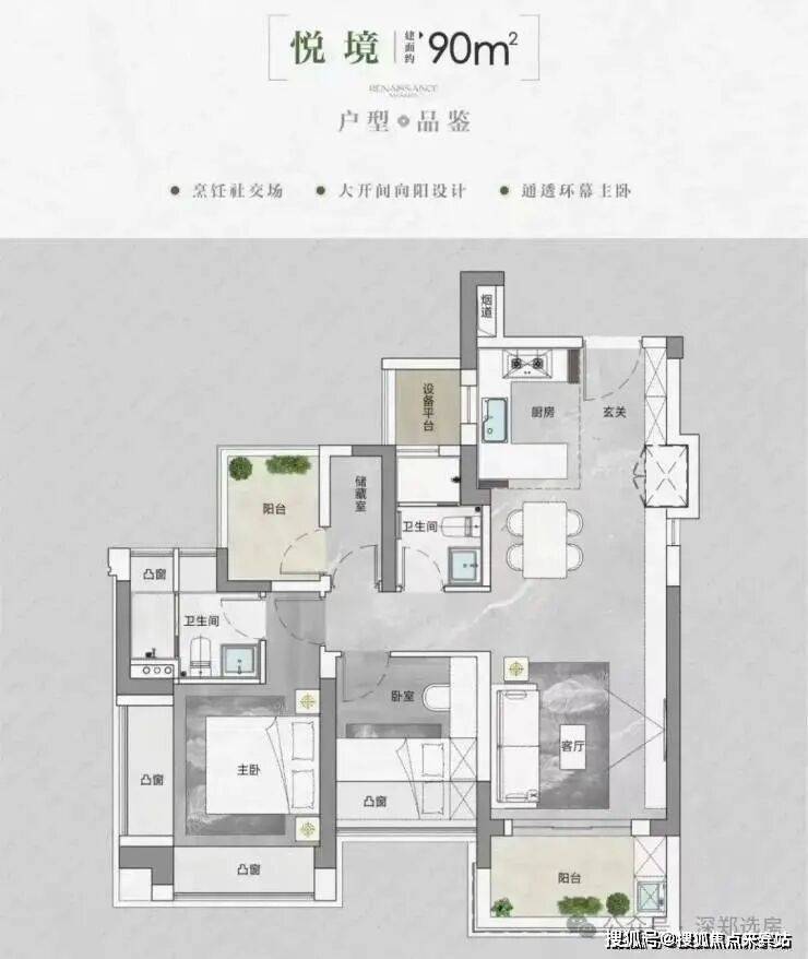产品方面,中海云启源境打造约90-143㎡新规三、四房,使用率较高。