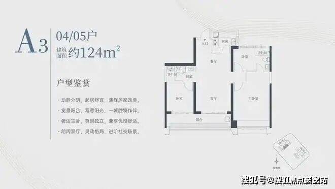 1栋一单元A3户型:面积约为124㎡