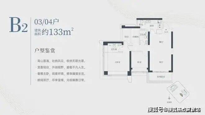 1栋二单元B2户型:面积约为133㎡
