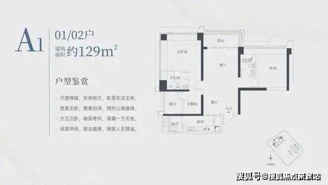 1栋一单元A1、A2户型:面积约为129㎡
