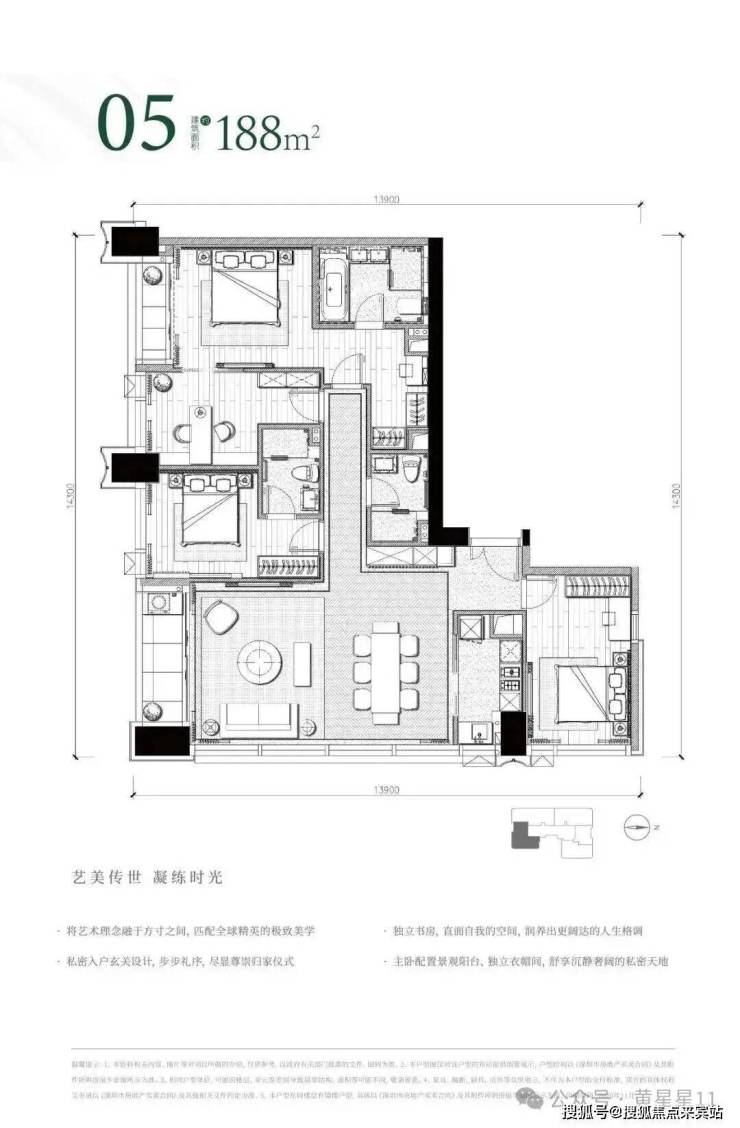 公寓面积段:153(三房) 188(四房) 220(四房) 223(四房)