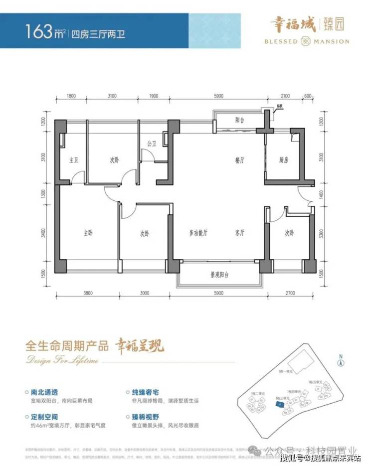 约163㎡4房3厅2卫(方厅),折后:约1000-1030万