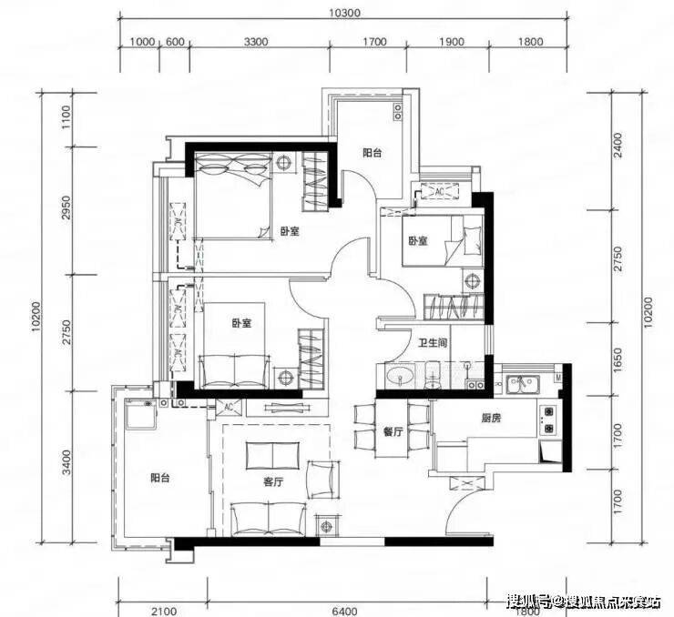 B03/05户型:约89㎡ 四房两厅两卫:
