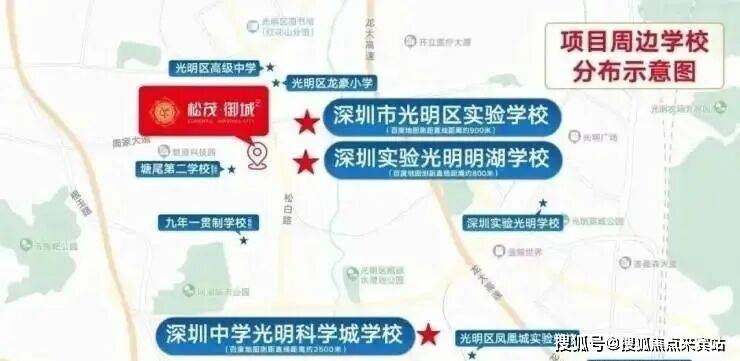 小学学区划分在教科院实验小学,秋硕小学,光明实验学校;初中学区划分在深圳中学光明科学城学校及凤凰城实验学校初中部。