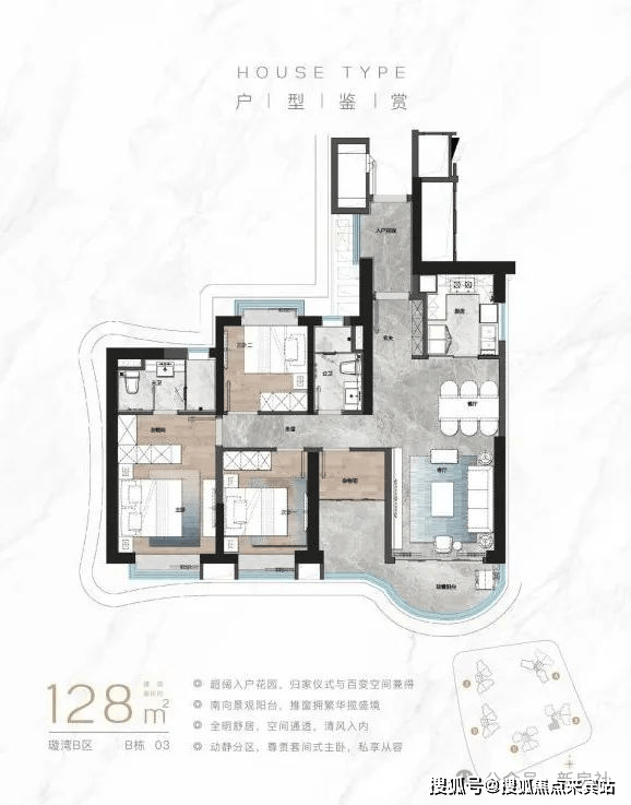 八重酒店式归家礼序,选用博物馆级环球石材,打造酒店式社区落客区;社区迎宾大堂(层高约9米);四季风雨连廊;单元豪华大堂;超配车库入口;车库地下豪华大堂;精装车马厅;臻享高定生活入户礼遇,塔尖圈层生活境界。